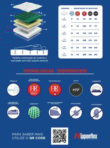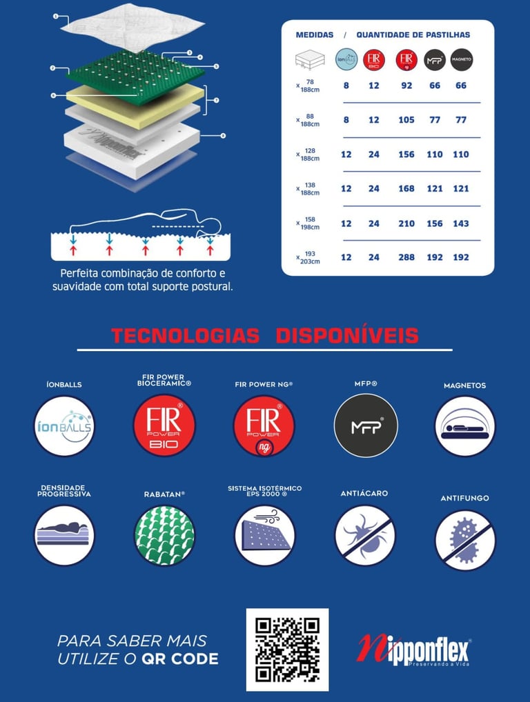 ÍON BALLS® - Tecnologia desenvolvida pelo cientista japonês Dr. Toshio Komuro e fornecida com exclusividade para a Nipponflex. As esferas de Íon Balls são compostas por minerais raríssimos e de altíssima pureza encontrados em meteoritos ou na crosta profunda de áreas vulcânicas